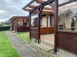 - Windgeschützte überdachte Terrasse mit Markise, inkl. Gartenmöbel (Tisch mit 4 Stühlen und Relaxliegen)