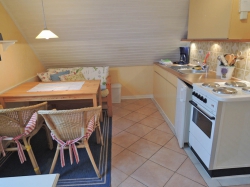 Die Ferienwohnung ist ausgestattet mit einer Wohnküche, 2 Schlafzimmern mit je 2 Betten und einem Duschbad.